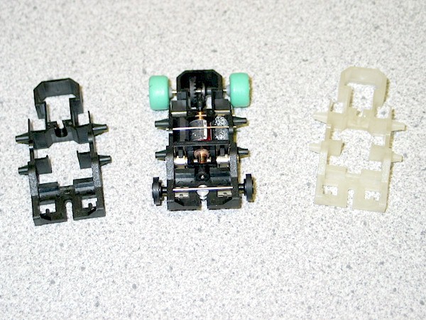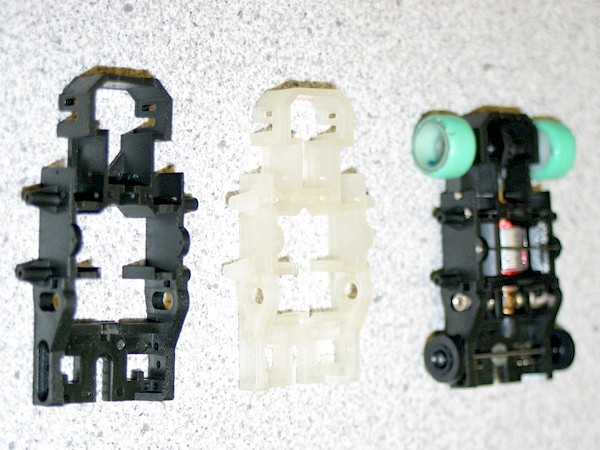 It is called the T+ Chassis and uses the T+ Bulkhead, along with G3 Traction magnets, P4 Motor magnets, and Panther Shoes for major components. Most other components are universal fit from any one of the Big 3 manufacturers. The Chassis comes in 2 colors Black (Rigid) and Natural (Low Flex). They are $20 each and need a bulkhead to be functional which is $10. All prices include standard shipping by USPS. Quantity Discounts are available. For any technical questions email slotcarparts2004@aol.com |