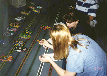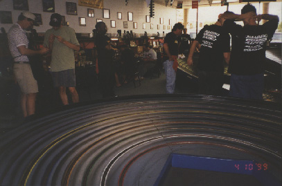 | Austin Texas' gateway to slot car fun! | Owner Skip Guenter announcing race standings over PA system |