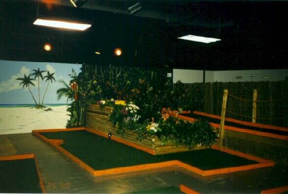 Attractively decorated miniature golf course, hand built by Ray and Patrick in their huge new 20,000 sq. ft. Family Fun Center |