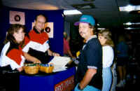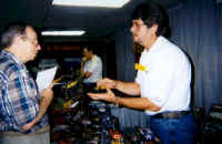 Scene at the TOA Manufacturers sponsored Sunday Breakfast | English distributor Derek Purkis at the Parma/PSE display booth |