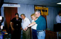 Slotcar Bulletin publisher Paul Meiers with Jerry Kulich and Dale & Nancy McClintock | Ann & Bob Herman of Pro Track meet Matt Hewitt of Slotona 5 On 5 |
