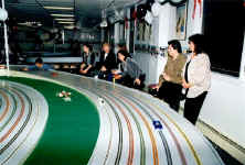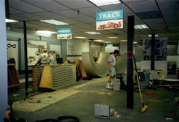 I would say that virtually every raceway owner in the world has had his or her share of problems – be they during the construction phase just getting started – or down the line a-ways. The same can certainly be said for Elmsford because they’ve certainly had more than their share of problems during the past year! When It Rains It Pours! …and that might be an advertising slogan for Morton Salt, but it more than applies to these bad-luck-plagued folks! It wasn’t bad enough that after nearly 35 years in the same location, the landlord pulled the rug from underneath the del Rosarios and refused to renew their lease. Then Hurricane Floyd came through and did a royal number on the raceway and the entire neighborhood! If that wasn’t enough problems to deal with, they had to dig up the street again in front of the new location. Lou sent us a lot of pictures of the "before" and "after" phases to give you an idea of what they were up against, virtually for the past six months starting last August. But hard work, blood, sweat, tears and a w-h-o-l-e lot of money later, Elmsford is back open and thriving once again. Hallelujah! You’ll be able to tell more of what they went through just by looking at the photographs. In addition to the pictures, Lou sent along the stories which were published in the Westchester Journal News – one story from July 19th; the other from the December 18th paper and both articles written by staff writer Robert Marchant. From July 19, 1999 "A track where generations of slot-car race fans have tested their skill will close next month after more than three decades in the same location. The Elmsford Raceway is now seeking another location where the miniature cars can speed over hundreds of feet of electrically-charged racetrack. The business lost its annual $33,000 lease from RBT Co., a local real estate firm, this week. The racetrack, which has another location in Stamford, Connecticut, is expecting to close by the middle of August. The site will be taken over by Princeton Ski Shops which is moving from a nearby mall where a movie complex is being built. The closing of the old racetrack will take with it many memories. "It will be sad to leave this place, which is so full of tradition and nostalgia – where thousands of people have been part of the raceway experience," said co-owner Lou del Rosario, who runs it with his wife, Barbara. Recalls Andy Wasserman, a 32-year-old Pleasantville native, "I had a birthday party at Elmsford Raceway when I was only 7 years old. Eleven years later I had won a World Championships at the same raceway. It’s a unique and very challenging track," says Andy. "If you can drive a slot car on that track, you can drive a slot car anywhere! You walk in there and you know you’re in one of the most historical places you can imagine. It really hurts to see it move." Andy also added, "In the game of slot car racing Elmsford holds a special place, similar to the way Indianapolis and the 500 do for big-car auto racing fans. Elmsford is the ‘Brickyard’ of slot car racetracks." The 1984 World Championships were hosted at the Elmsford location, Barbara noted. People came from Brazil, Japan and Australia, just to run on the Nuvolari track. The del Rosarios – who also compete in 1/1-auto races, are looking hard for a 4,000 sq. ft. site where they can resume the business. "Hopefully, we’ll be up and running by Thanksgiving," said Lou. Town Supervisor Paul Feiner said he was disheartened to see the raceway move out and hoped the business would relocate in a nearby location. "It’s tough to lose a business like that," he said. "They’ve really been an asset to the community." Raceway manager for nine years, Paul Gelman said, "I enjoyed being around and involved in a business that brought happiness to young people and families through the years. It’s a business that keeps you young and it is rewarding," he said. Another slot car track recently opened in Cortland, the only other one in Westchester County. Attorney Louis Soloway, representing the landlords, had no comment when asked about the termination of the lease." Five months later, on December 18th, Mr. Marchant wrote: "Elmsford Raceway, where slot car racers have taken the checkered flag or crashed in ignominious defeat for over 34 years, is reopening today. The raceway, where miniature cars speed over three electrified track surfaces, survived the loss of nearly $500,000 in equipment and merchandise from flooding in Hurricane Floyd as well as losing their lease, has reopened at 17 North Payne St. "We were looking all over the place and all of our customers really went out of their way to make us stay in the area," said co-owner Luis del Rosario. The new location, about twice the size of the former raceway, is just three blocks from the former site. "It’s an ideal building," Lou said. "We’ll be able to do more stuff at the new place than we were ever able to do before." The town of Greenburgh has renamed the block where Elmsford has reopened. It will now be called "Raceway Lane." Despite the popularity of video games and other forms of recreation for young people, slot car racing still has a strong appeal, said Barbara." And we echo that sentiment 100%! There’s nothing like slot car racing anywhere in the world for the best, in fun and wholesome family fun! A huge "Thanks-A-Million" has to go to contractor John Marconi and Track Builder Steve Ogilvie (and many, many volunteer helpers!) for the incredible job of moving everything; rebuilding all the tracks from the ground up – including all new MDF racing surfaces – and getting the new place ready to open. Lou was honest…he said, "They did all the work. I just supervised." We’re only sorry we missed the Grand Re-Opening, but one of these days, Good Lord willing and no more floods from hurricanes, we’ll get up to see the new raceway – now with Two Floors of Flat Out Fun! |