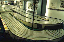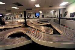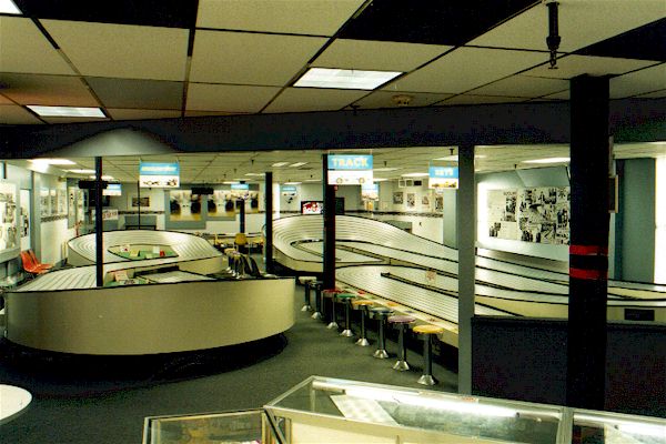 knew they were in for a completely different brand of excitement and entertainment. And come in they did by the tens of thousands! Dozens upon dozens of competing raceways opened in neighborhoods and towns surrounding around the Elmsford location. When racers and track owners from other places visited, many came away having witnessed two very different phenomenon: 1) The del Rosario raceway was almost always packed with kids and adults; and 2) they quickly realized that this was unlike any other commercial slot car raceway theyd ever seen! You hear the following statements all the time "Well, for one thing it was always neat, clean and the personnel not only friendly, but extremely knowledgeable. And what was the second? oh yes the lane colors on all the tracks are screwed up! Theyre not like any weve ever seen before!" Yes thats true Lou didnt follow the familiar. From the outset Lou forged his own path through this new wilderness. He was undoubtedly one of the first track owners to employ the services of an interior decorator for a commercial raceway! [Could this have been feng shui in the 60s?] Lest you think that Lou did all this on his own wait a minute! Right beside him, and equally as intelligent, talented, knowledgeable (and a LOT better looking!) is his beautiful wife Barbara. Not only did she work side-by-side with Lou from the beginning, but developed what has to be the most successful birthday party program in the country. To top everything else, Mrs. dR gave birth to their children. When you look at the canopy above both Elmsford and Stamford you see the number "43." Thats not copied from Richard Pettys car no, it signifies their childred seven in all four daughters and three sons. They are: Monique, Bobbie Jo, Eva, Alicia, Michael, (who runs ERI Distributing in Congers, New York), Lou III and Ricky. All of them, at one time or another, played at mom and dads raceway. They now have families of their own who come to race slot cars. Almost thirty-two years to the day, the del Rosario Empire expanded yet again this time to include yet another brand new "FLAT OUT FUN" raceway in Stamford, Connecticut. The indelible del Rosario influence is evident throughout this new store but with decidedly "a womans touch" Barbaras! For it is she who said, "OK, Lou you stay here and run the raceway in Elmsford. Im going across the state line into Connecticut and see if I can match you in sales and service!" We dont have the figures, but we can just about bet you the farm that Barbara is doing just that! The new facility is beautifully decorated and most attractive with brand new Ogilvie tracks; an incredible array of inventory and stock; but sports a new Vice President and General Manager one very well-known gentleman in the industry Mr. Jim Vincent. About the same time that the new facility in Stamford was taking shape and getting ready to open, Lou decided to do his annual spruce up to Elmsford. Therefore we present you some pictures of both places one every 60s racer will instantly recognize and Barbaras new place in Stamford. Both facilities bear a striking resemblance to one another from the overhead canopy race car signs to the color-coordinated interiors to the well-stocked showcases and walls to the uniquely different lane color sequences and finally to the names given to the track layouts. At Elmsford and Stamford you might recognize the shapes but wont see sidewalls painted in various colors or track layouts named after British Royalty. The tracks at Elmsford and Stamford are named after race car DRIVERS - "Tavo Nuvolari," "Mike Hawthorne," "Count DePortago," "Bill Holland," and Jim Cink." All racing surfaces at both Stamford and Elmsford have been painted a neutral gray with lighter, matching colored sides. We mentioned the lane colors before. Almost the whole world has become familiar with "Red, White, Green, Orange, Blue, Yellow, Purple, and Black." Not so at Elmsford and Stamford. Visit and race there and youll have to quickly become familiar with "White, Black, Red, Green, Orange, Blue, Purple, and Yellow." Do I hear a "Huh?" I did the same double take in 1966 and have kidded Lou ever since. A lot of prospective track owners have tried to copy Barbara and Lous formula for success. Some have succeeded and some have not. Why have the del Rosarios been so successful through the decades while so many others have fallen by the wayside? There are no simple answers, but here are what we consider to be at least one Top Ten list of reasons why the del Rosarios continue to be so successful, right from the beginning. These things were done nearly 34 years ago at Elmsford, and repeated just this past year at Stamford. This list is only partially what has contributed greatly to Lou and Barbaras longevity and financial well being: