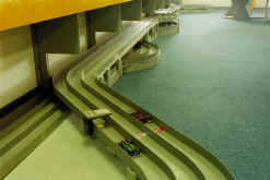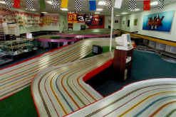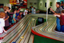 RETURN TO REMODELED FASTRAX RACEWAY Owner George Russell hired West Coast track builder Roger Paul in August to come in and not only transform one of Fastrax former twisty road course into a more driver-friendly 100’ Orange layout, but to also construct a 3-lane Tamiya Mini 4WD track. The thought crossed my mind that Mr. Russell had figured out better ways to increase his overall bottom line by a significant amount. It had to: making these types of changes during the slower summer months is certainly not cheap! George didn’t need to be a rocket scientist to know track time revenue was dropping on his track at the front of his raceway. He noticed most of his customers preferred to race on the banked track at the back of the store, ignoring the challenging, flat road course. (ED. NOTE: This is a good point for all track owners to note: When a track is no longer making sufficient money to pay its fair share of the rent, it’s time to consider what Mr. Russell has done. You can increase track revenues by swapping an unproductive track for one of a different design, or easier to drive. Why do you think your wife swaps the living room furniture around every so often? It gives the home a "new look," making it more attractive and comfortable. The same concept applies in business as well and a raceway is no exception. Just swapping a huge old dinosaur for a couple of smaller layouts gets you twice as many lanes, new tracks for people to learn to drive, and an increase in customers. Ah yes…love that sound of a ringing cash register! RG) Another innovation George included in his renovation definitely would make any mother proud. He did his homework by doing research on the Tamiya Mini 4WD program. He read the report we did on Terence Iwamoto’s Automobilia Raceway earlier this year. George read about the huge sums of money being made and called Tamiya and Eagle Distributing to talk with their representatives. After reading all the literature and seeing that substantial revenues could readily be generated, George had Roger begin construction. Not only has the track proved to be like a license to print money, but we’ve taken the liberty of duplicating George’s flyers in the back of this issue for both his Tamiya as well as his Birthday Party programs. These are making Mr. Russell a very, very tidy profit and we advise all track owners to employ this type of printed publicity. It stands to reason with the amount of business George generates that he could not possibly do it all by himself. He has surrounded himself with an extremely knowledgeable and friendly staff. They include: • Russ Toy who we reported on when we did our original cover story last April. • Brian Pankhurst runs Fastrax Friday night Drag Racing Program. • Spencer Allen (who West Coast folks will remember as the former owner of Hot Slots in Pleasant Hill) runs the "Euro" program every Wednesday evening and keeps all the NASCAR folks happy with an energetic program every Thursday evening. • Tony Papagna is one of the West Coast’s top Mini builder and racer. Tony runs the Tamiya program at Fastrax. For those of you just getting started in this form of racing might wish to check out Tony’s Tamiya Tech Tips column on the Fastrax website. • Michael "Hopper" Kwiatkowski, a recent high school graduate from the neighborhood, is a vital assistant because, as George put it, "Michael has been racing since he was knee-high to a grasshopper." Michael has extensive working knowledge of all types of model race car equipment, including slot cars, Tamiya Mini 4WD, radio-control as well as go-karts. And since youth always relate better to one another, it’s always helpful to have one around that’s this knowledgeable and willing to assist new youngsters. So it’s fun to report on our members who, like the del Rosario’s of Elmsford and Stamford; Jim Hollabaugh of DJ’s Raceway; and now George Russell of Fastrax, have expanded, moved or renovated their businesses to increase their business. All of these fine and very successful individuals are not afraid to share their knowledge and expertise. All you have to do is give them a call. That’s one of the reasons why they are members of this association and why the TOA exists. If you want to know more about Fastrax or have any questions, check with George Russell at: You’ll note that Mr. Russell is one who has taken advantage of yet another of the many TOA member benefits – free website hosting. If you don’t have a website, contact our webmaster for help and get it posted under "Member Links/TOA Member Raceways" If you already have a website, let us know so we can get you linked to the TOA site. We e-mailed George the text and he sent us back the following to add to the story: "I hope the other track owners get something out of it. After all, we all want to help each other. A few comments. First of all, Roger built the Tamiya track in early May, then returned in late May to rebuild the road course into an American Orange. Actually, the other main reason for making the track user-friendlier was for birthday parties. The Orange is more popular than the road course, even for the kids at the parties. Also, we had Roger reverse the polarity on the orange a few months ago so that the party director (the guy in the striped shirt) can stand at the computer in front of "the kink" and marshal cars by himself. With the track going left to right at the driver’s panel, the cars go downhill donut and if they launch in the kink, they don't end up caught under the bridge. (Take note track owners who do parties on American Orange tracks!) Last weekend, IMCA raced on the backwards Orange and really liked it. National Champions such as Paul Gawronski, Micheal O'Donnel, Michael Rocha, Tracy Chin and Ian Douglass were running 2.3 second laps on the track with their Eurosports. Then, the next day we had three parties in a row on the same track! Another correction is to refer to Tony Papagna