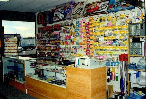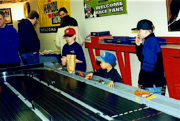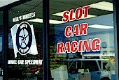 We have our own Internet web site for information and mail order merchandise sales and sell items on the Ebay auction site. We conduct in-store "swap meets" a couple of times a year. Pricing :Lane rental $6/hr.; car and controller rental: $2/hr. Birthday parties: $10/$12 per person; race entry fees $5 (drag) and $7 (road). Give discounted entry fee for 14 and under.